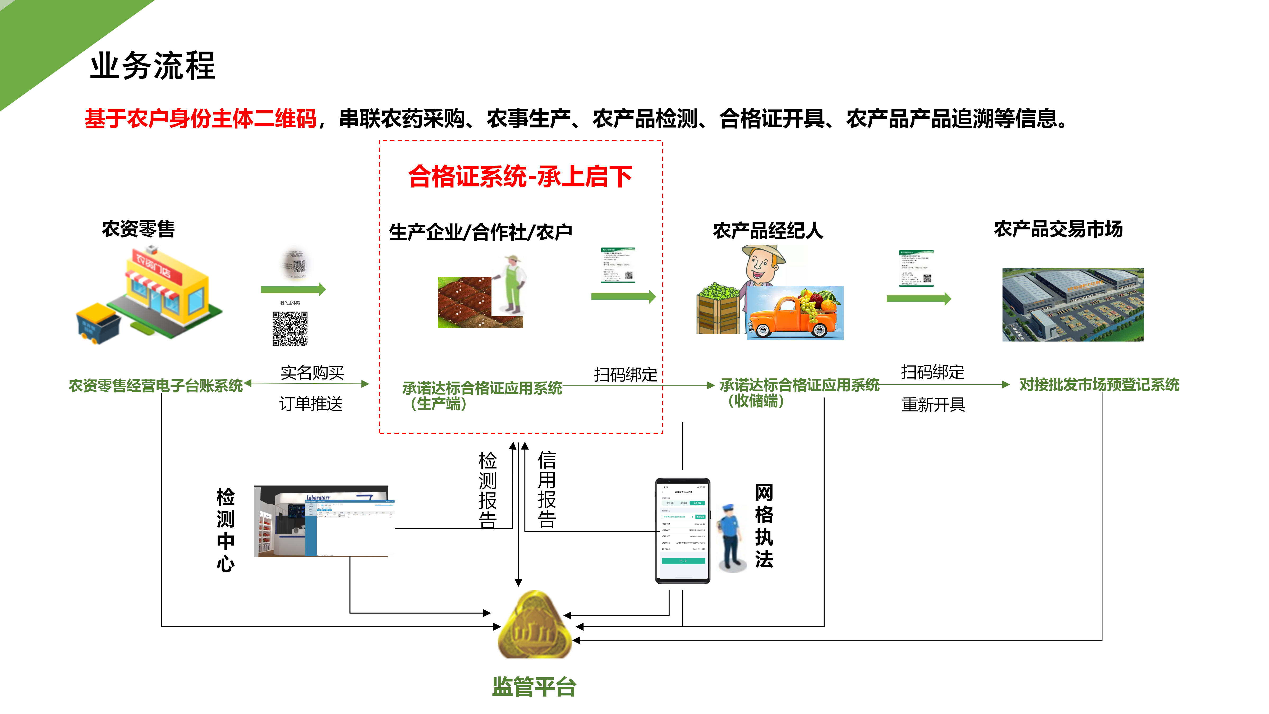 电子合格证: 支持二维码整合,与追溯标签、农产品质量标志融合,实现"一码多用"。
